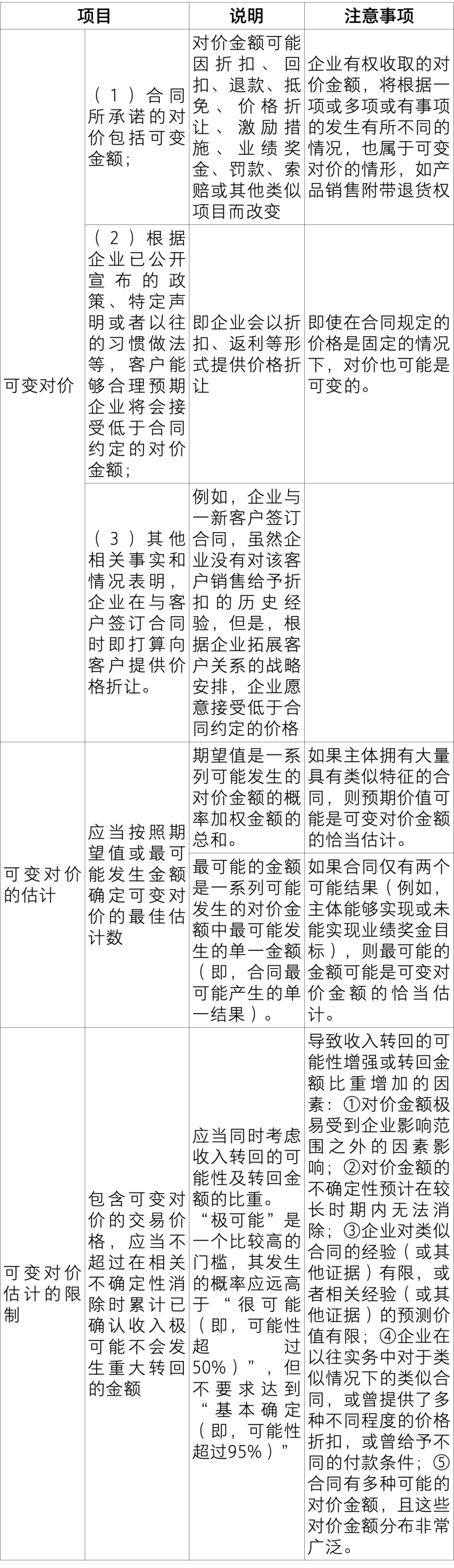 4.可变对价。合同中存在可变对价的,企业应当按照期望值或最可能发生金额确定可变对价的最佳估计数,但包含可变对价的交易价格,不得超过在相关不确定性消除时累计已确认收入极可能不会发生重大转回的金额。