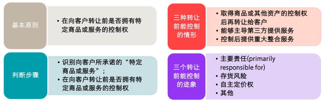 在具体判断向客户转让商品前是否拥有对该商品的控制权时,企业不应仅局限于合同的法律形式,而应当综合考虑所有相关事实和情况,这些事实和情况包括: