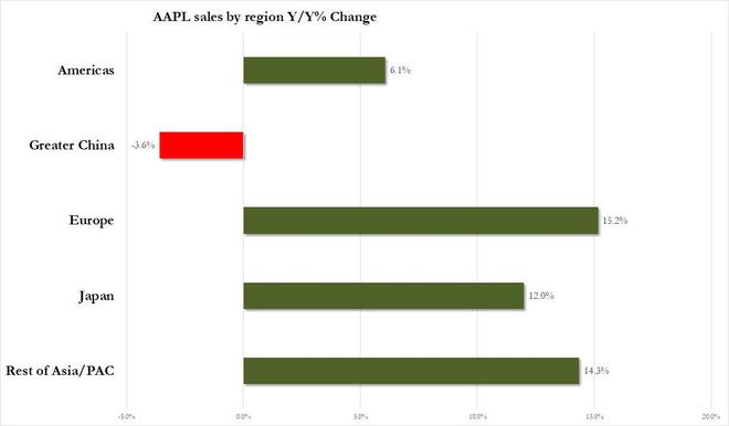 在苹果的主要市场中,三季度只有美洲和大中华区的销售逊于分析师预期,只有大中华区的销售负增长。