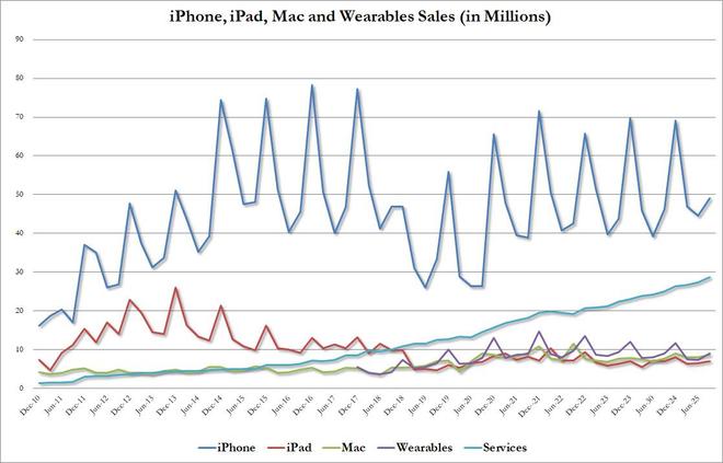 尽管处于手机销售淡季,又面临特朗普政府关税的冲击,苹果上一财季的收入仍强于华尔街预期,创历史同期最佳表现,强劲的服务业务成为增长支柱,抵消了iPhone增长明显放缓的影响。